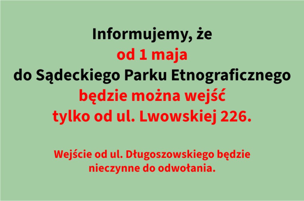 Od 1 maja wejście do Sądeckiego Parku Etnograficznego tylko od ul. Lwowskiej
